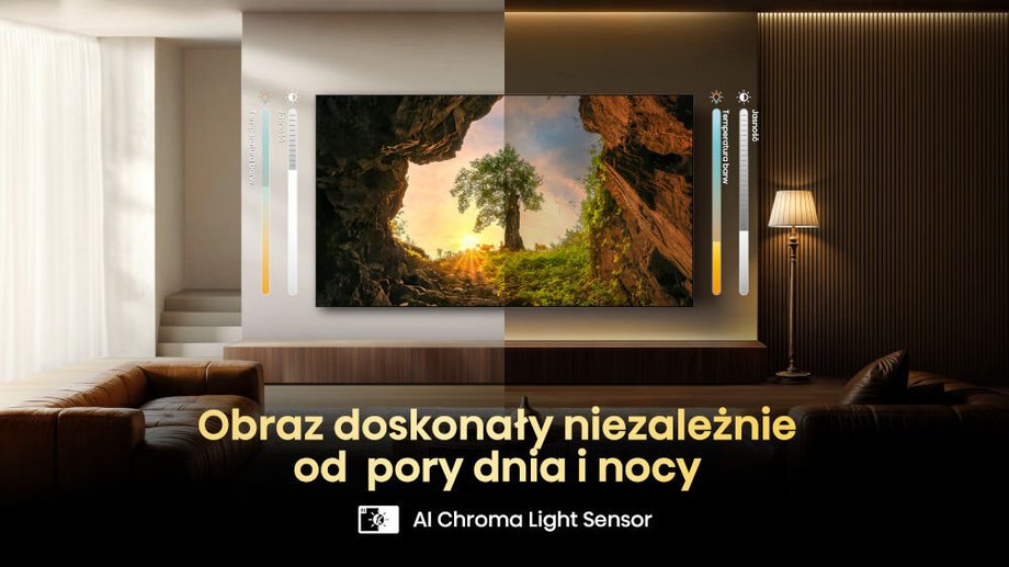 - Panel QD-Mini LED z wysoką jasnością i wielką liczbą stref przyciemniania gwarantuje wierne odwzorowanie kolorów