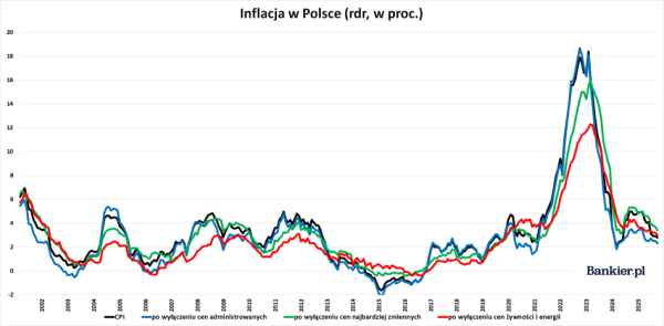 W październiku 2025 roku inflacja bazowa osiągnęła najniższy pułap od 6 lat, jednakże nadal przekraczała prognozy większości ekonomistów. Ponadto, wciąż nie zmieściła się w przedziale 2,5-procentowego celu Narodowego Banku Polskiego.
