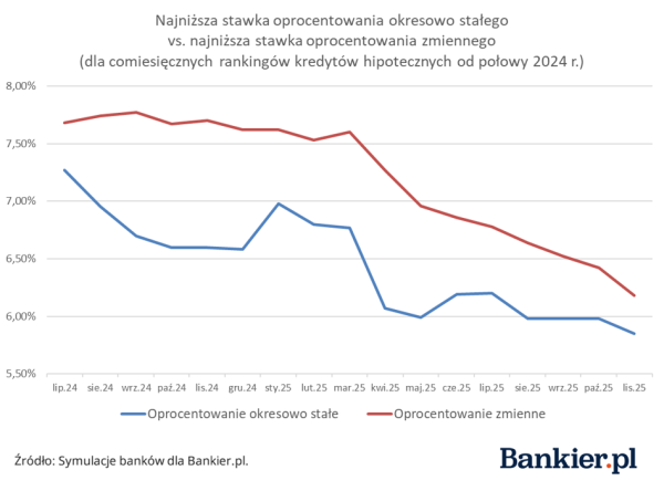 1. Stawki hipoteczne coraz bliższe. Niewielka różnica między oprocentowaniem zmiennym i stałym