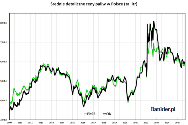 W połowie października uśredniona cena detaliczna benzynybezołowiowej 95 ustabilizowała się na pułapie 5,88 zł/l i była o jeden grosz wyższa niż tydzień wcześniej – wynika z danych BM Reflex. Cena oleju napędowego średnio w kraju wyniosła 5,97 zł/l i nie zmieniła się w porównaniu z poprzednim tygodniem. Jednocześnie na światowych rynkach akcje ropy naftowej i gotowych paliw gwałtownie straciły na wartości.