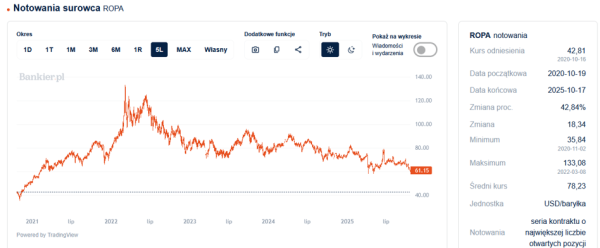 To jeszcze nie wszystko, ponieważ notowania benzyny na giełdzie nowojorskiej spadły do 1,76 USD za galon, co stanowi najniższą cenę od pierwszych tygodni 2021 roku. Z kolei olej napędowy na londyńskiej giełdzie ICE staniał do 630 USD/t, pomimo że jeszcze pod koniec września kosztował niemal sto dolarów więcej. Także dolar amerykański był wtedy nieco droższy niż obecnie. Zatem wpodobnej sytuacji paliwo w Polsce powinno być o wiele tańsze, niż jest to w rzeczywistości.