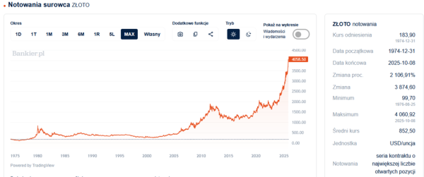Po raz pierwszy w historii byliśmy świadkami wyceny złota na poziomie 4 000 USD/oz. Tak dynamiczny wzrost wartości szlachetnego metalu sugeruje, że sektor finansowy coraz szybciej ogranicza wiarę w dolara i obligacje rządu Stanów Zjednoczonych. Złoto w rzeczywistości powraca do systemu jako jedyny niezawodny pieniądz.