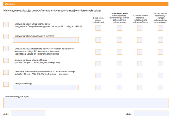 Rezygnacja z umowy Orange